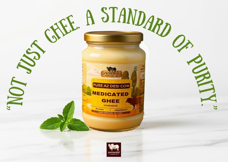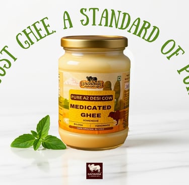 A2 ghee is rich in healthy fats and free from A1 beta-casein, making it easier to digest and supportive of heart health. Consumed in moderation, A2 ghee helps balance cholesterol levels, supports good HDL cholesterol, and promotes overall cardiovascular wellness as per Ayurvedic wisdom.